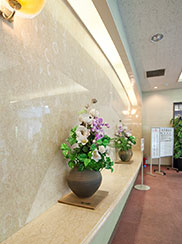 ※金庫のご利用を希望される場合は、事務所までお申し出下さい。鍵を貸出致します。 共用部 待合ホール: 1室/自動販売機/両替機/備え付け新聞/テレビ/給茶機/トイレ(身体障害者用トイレ完備) 給湯室: ミニキッチン 和室 待合: 2室/20人収容/冷蔵庫/金庫 法要: 1室/40人収容/冷蔵庫/金庫