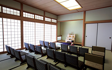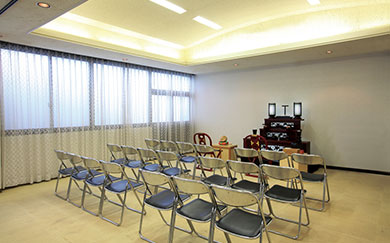 ※火気・煙類使用可能洋室 待合: 2室/20人収容/冷蔵庫/金庫 法要: 1室/40人収容/冷蔵庫/金庫